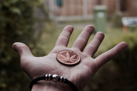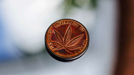 マリファナの葉とそれ真鍮大麻コインを合法化します サティバのコンセプトです の写真素材 画像素材 Image 3605